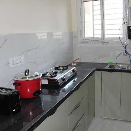 Eine komplette Küche ist in den Zimmern des Apartments Spacious 2Bhk Close To Hitech City For Family Stay vorhanden.
